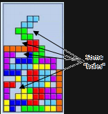 If the player makes bad decisions about where to put pieces, they can end up with boards with "holes" in them as shown at right. These holes will eventually cost them the game.